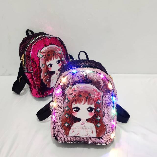 TAS RANSEL LOL SEQUIN KARAKTER PRINCESS LED MENYALA DIMATA . Sumber Gambar : shopee.co.id