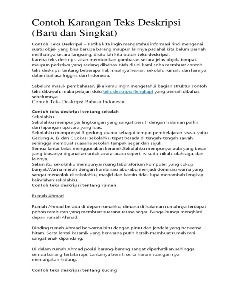 8 16 2021 Contoh Paragraf Deskripsi Tentang Sekolah Umumnya digunakan dalam novel atau cerpen sehingga pembaca terkesan tertarik dengan suasana yang digambarkan Informasi lebih lanjut tentang definisi bersama dengan contoh contoh teks deskriptif akan dijelaskan di bawah ini