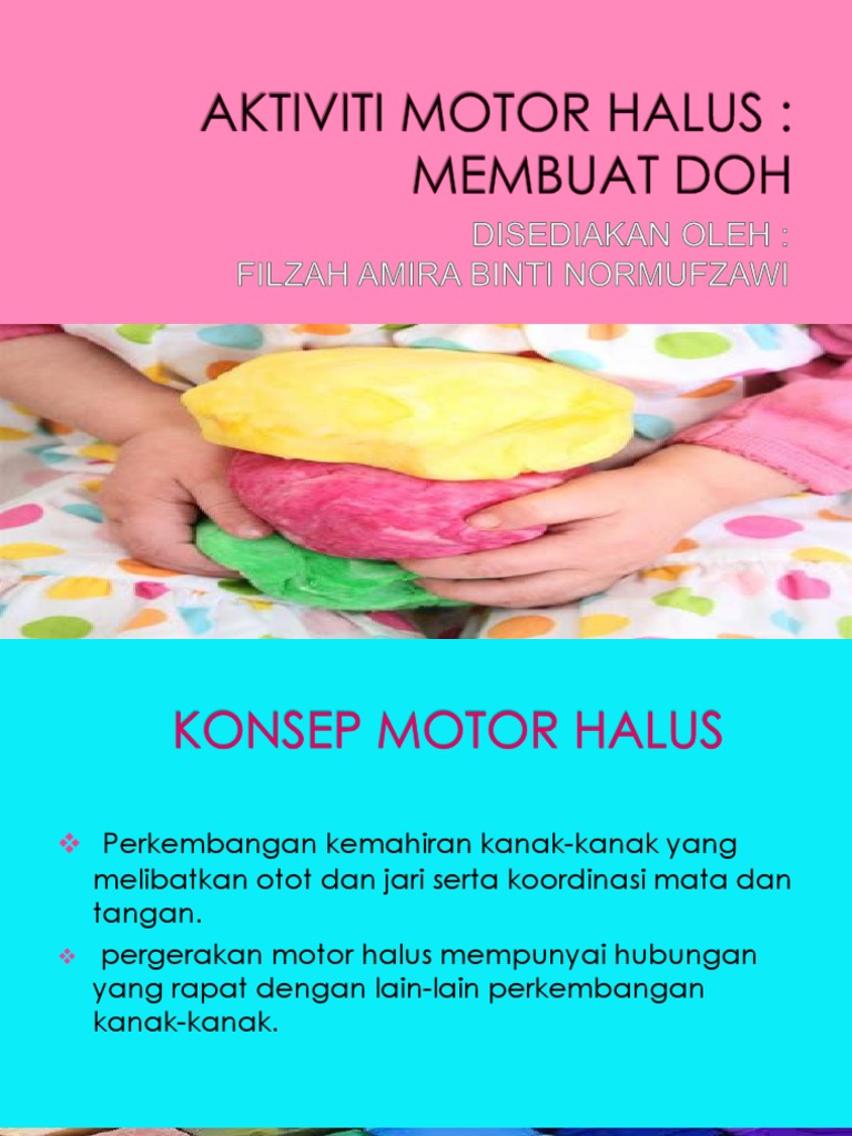 22 12 2022 Kemahiran motor halus yaitu amat primer bagi membolehkan anak mewarna tanpa membuatkan kertas bergerak menggunting dan juga menampal Dalam kehidupan seharian kemahiran motor halus ini diperlukan oleh anak untuk membutang baju mengikat tali kasut mengikat riben memegang sudu garfu untuk makan serta membuka dan menutup zip pakaian