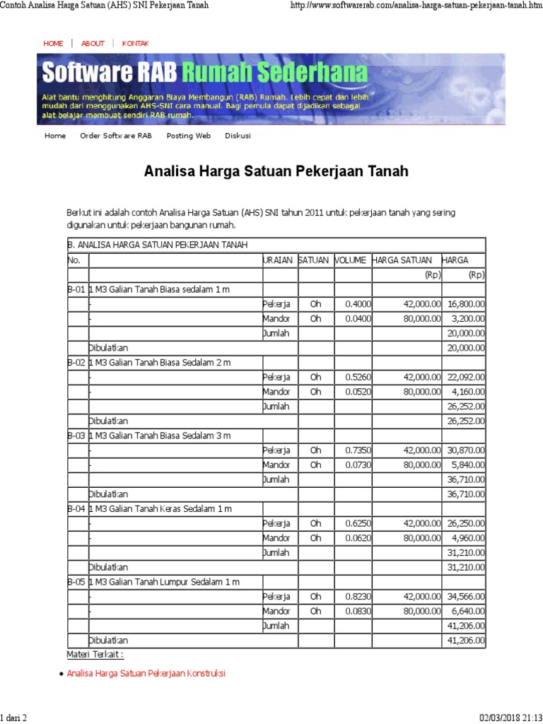 Contoh Analisa Harga Satuan AHS SNI Pekerjaan Tanah Sumber : www.scribd.com